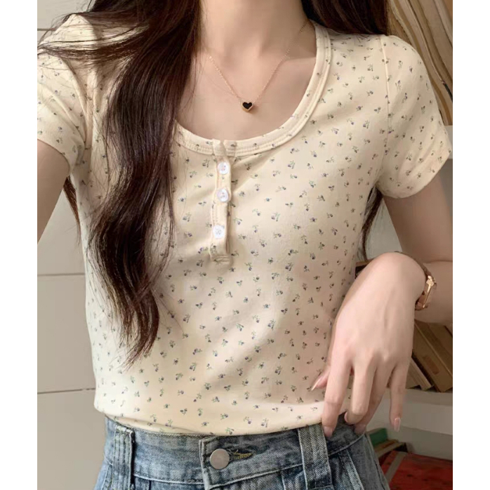 เสื้อยืดแขนสั้น พิมพ์ลายดอกไม้ แฟชั่นฤดูร้อน