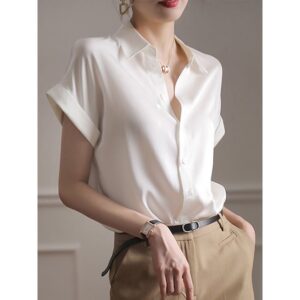 เสื้อโปโลสีขาวสำหรับทำงาน แขนสั้น เรียบง่าย